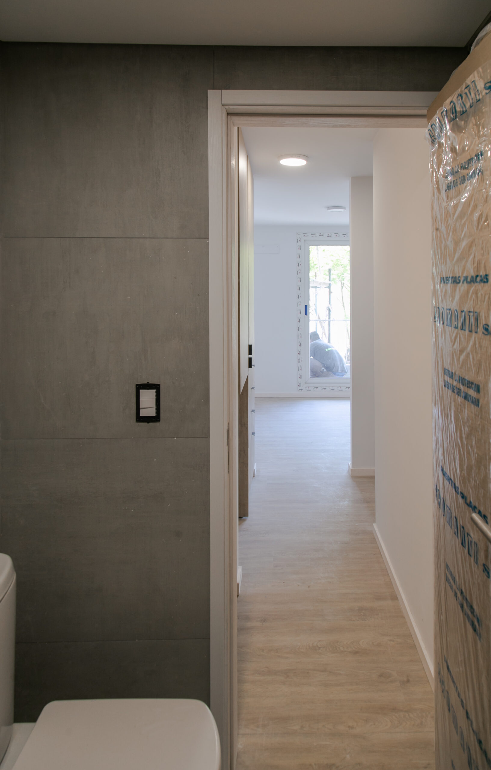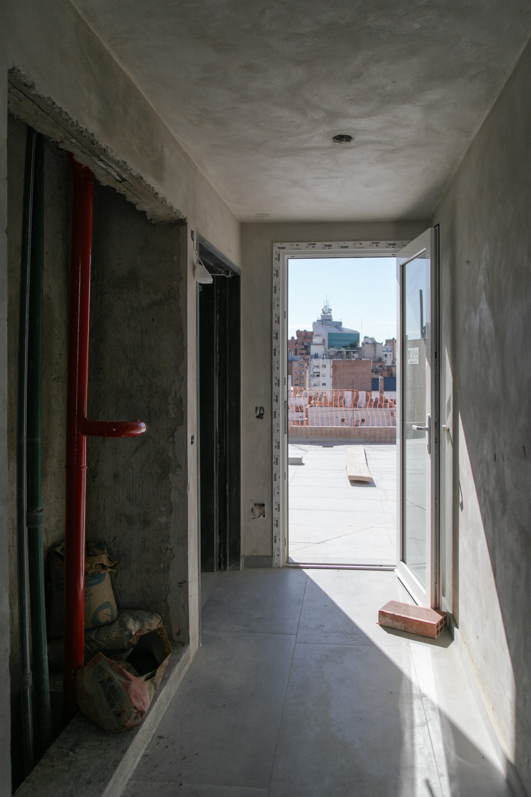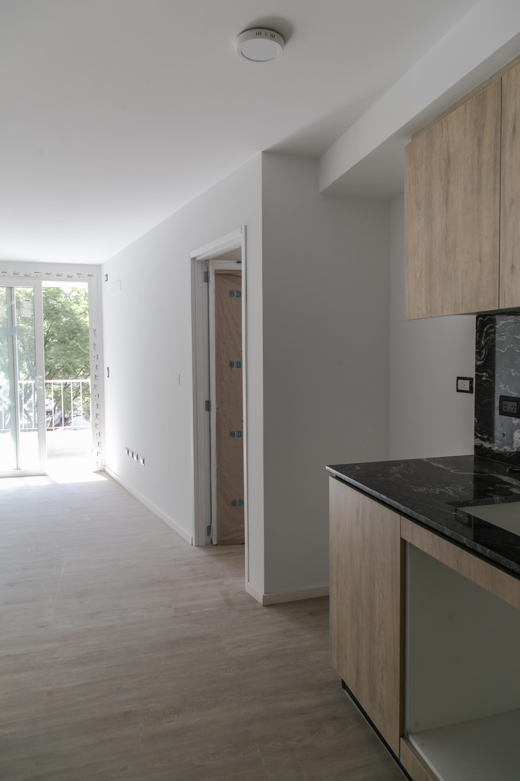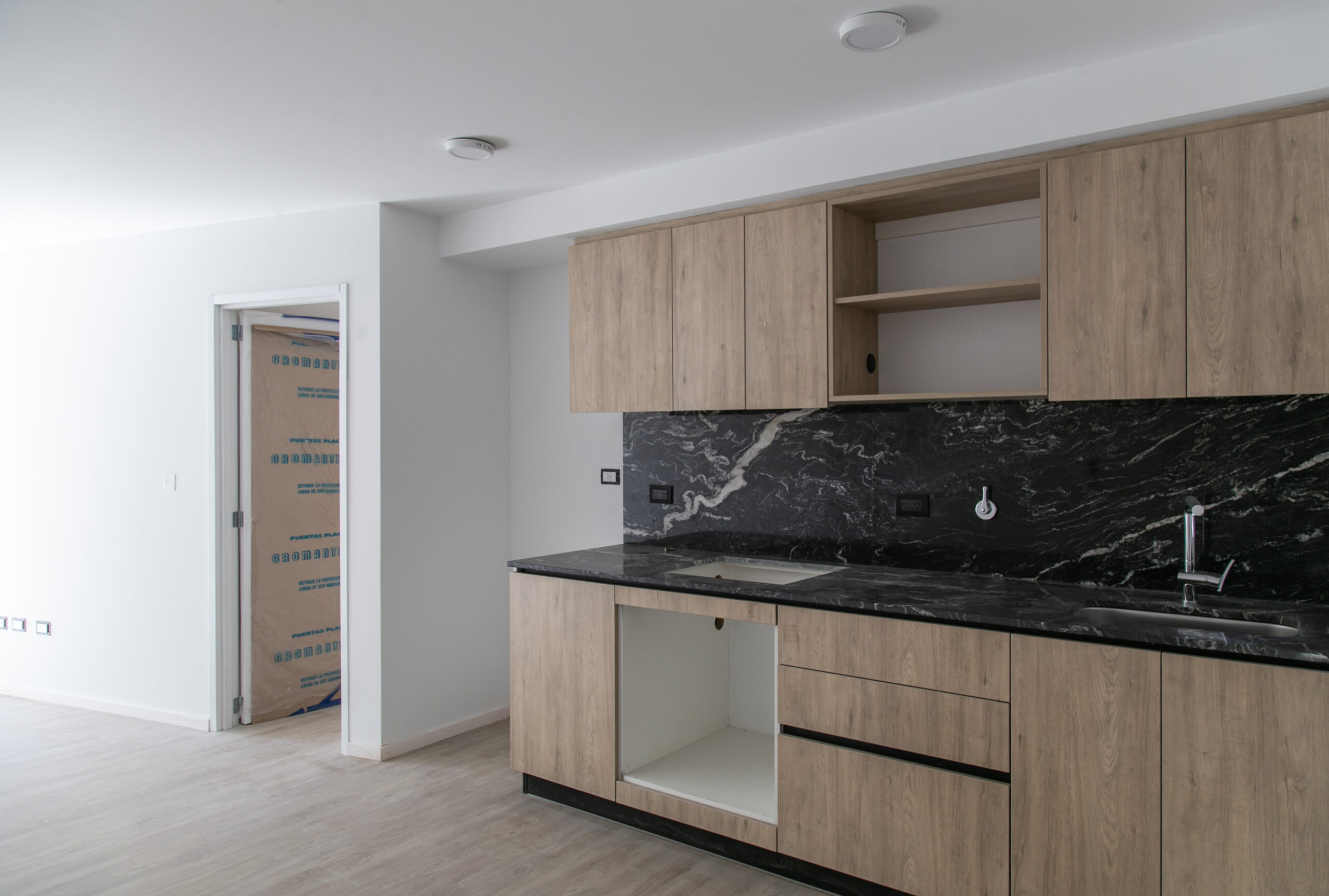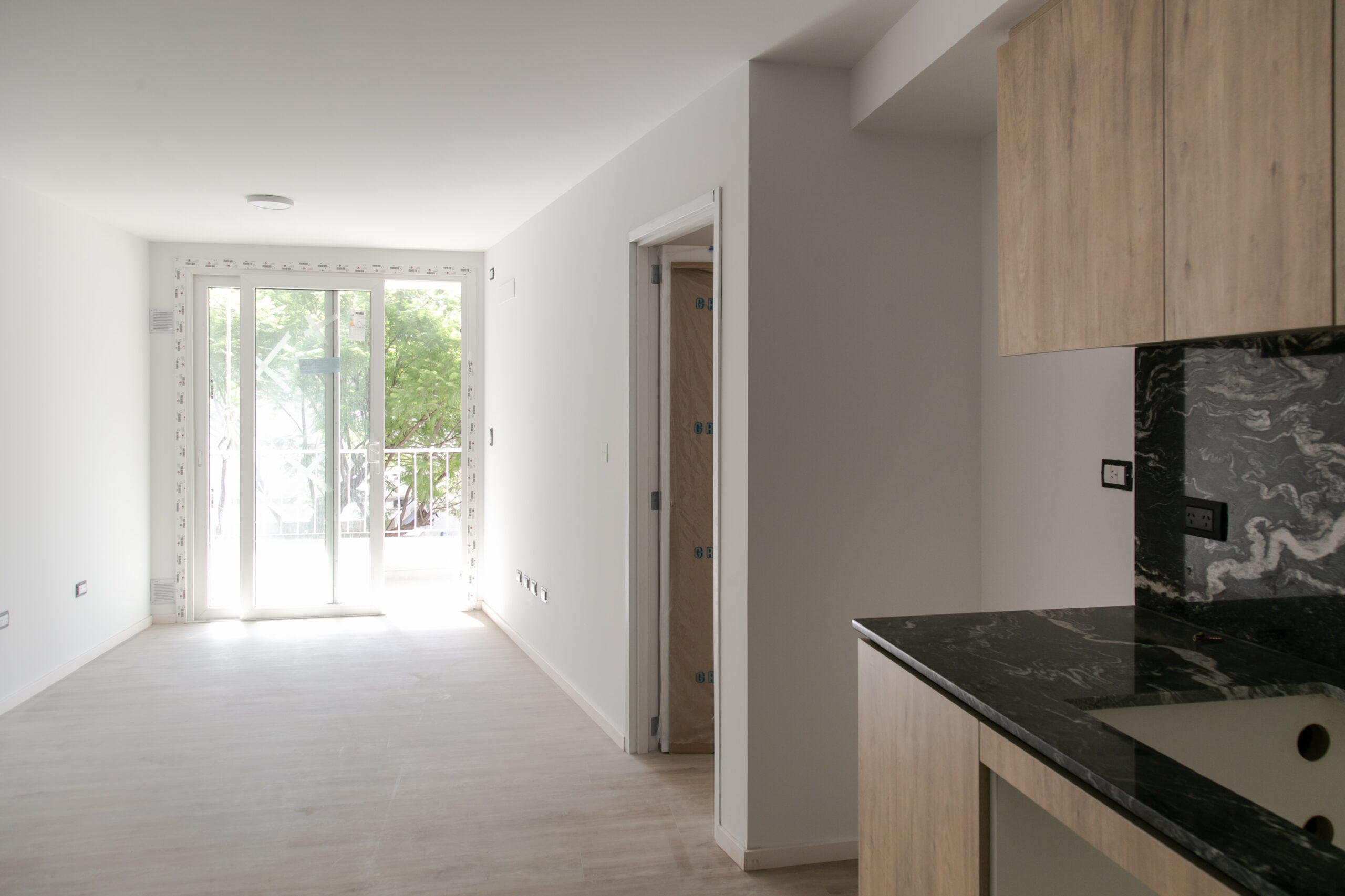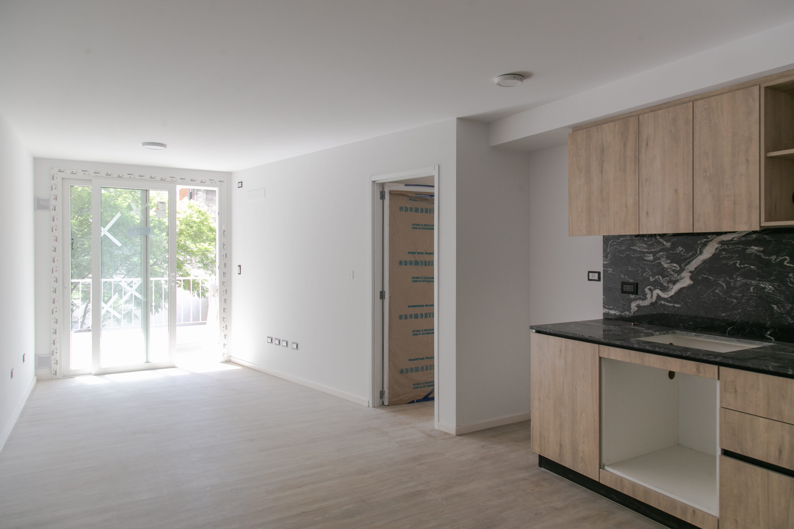 INTERIORES DE DPTO: COLOCACIÓN DE ABERTURAS EN PISOS SUPERIORES - CONTINÚA COLOCACIÓN DE MUEBLES Y MESADAS - COLOCACIÓN DE PISO VINILICO
