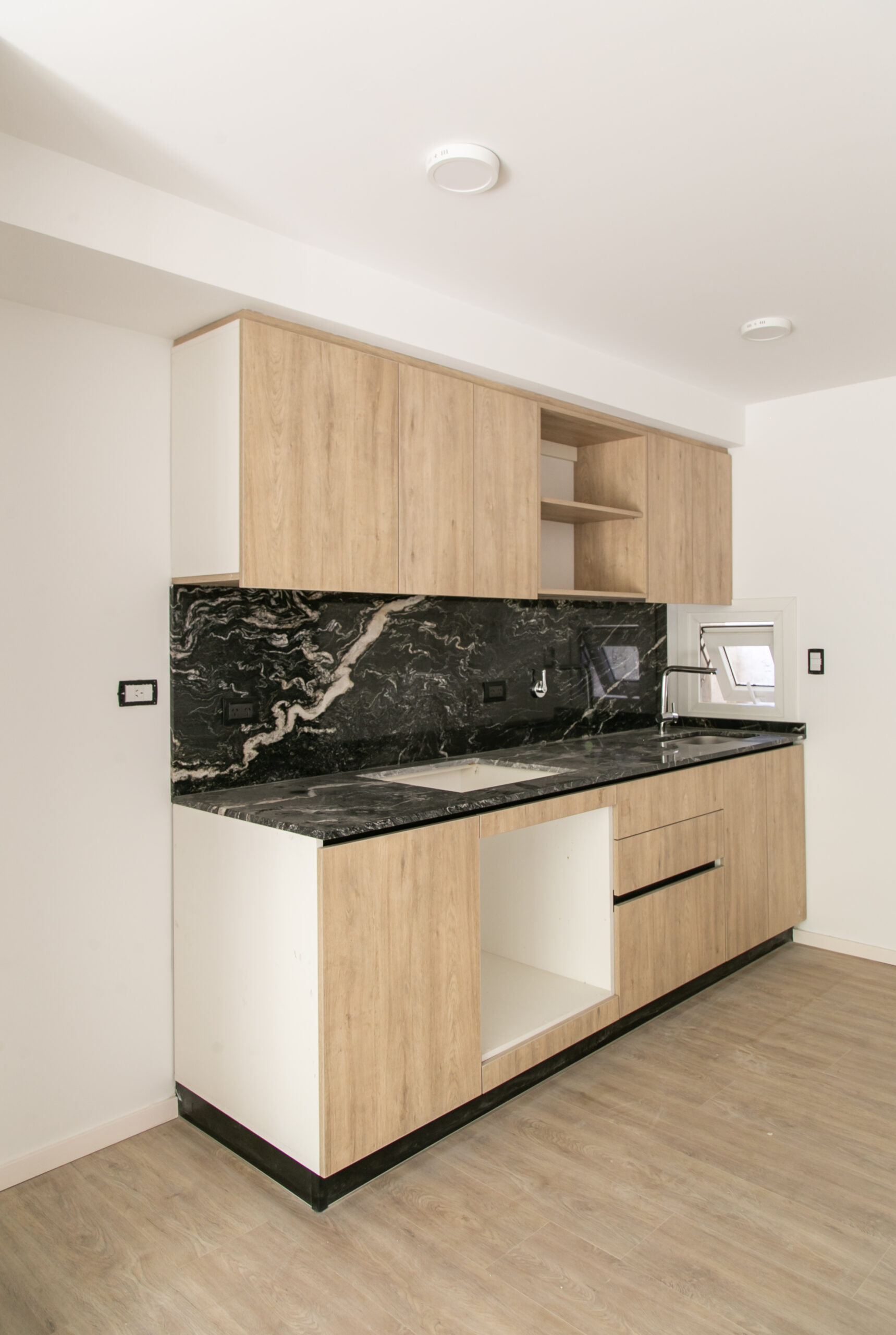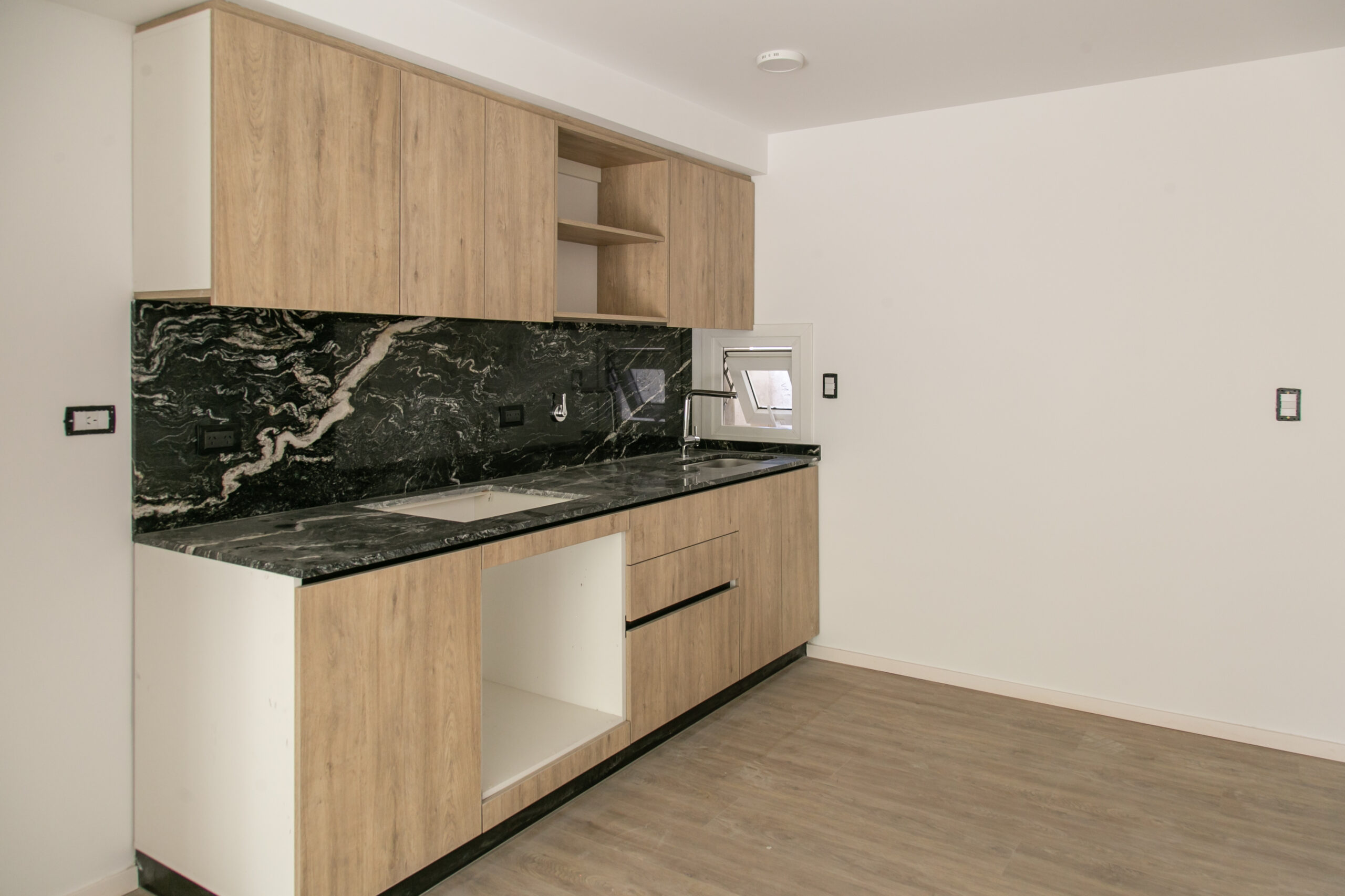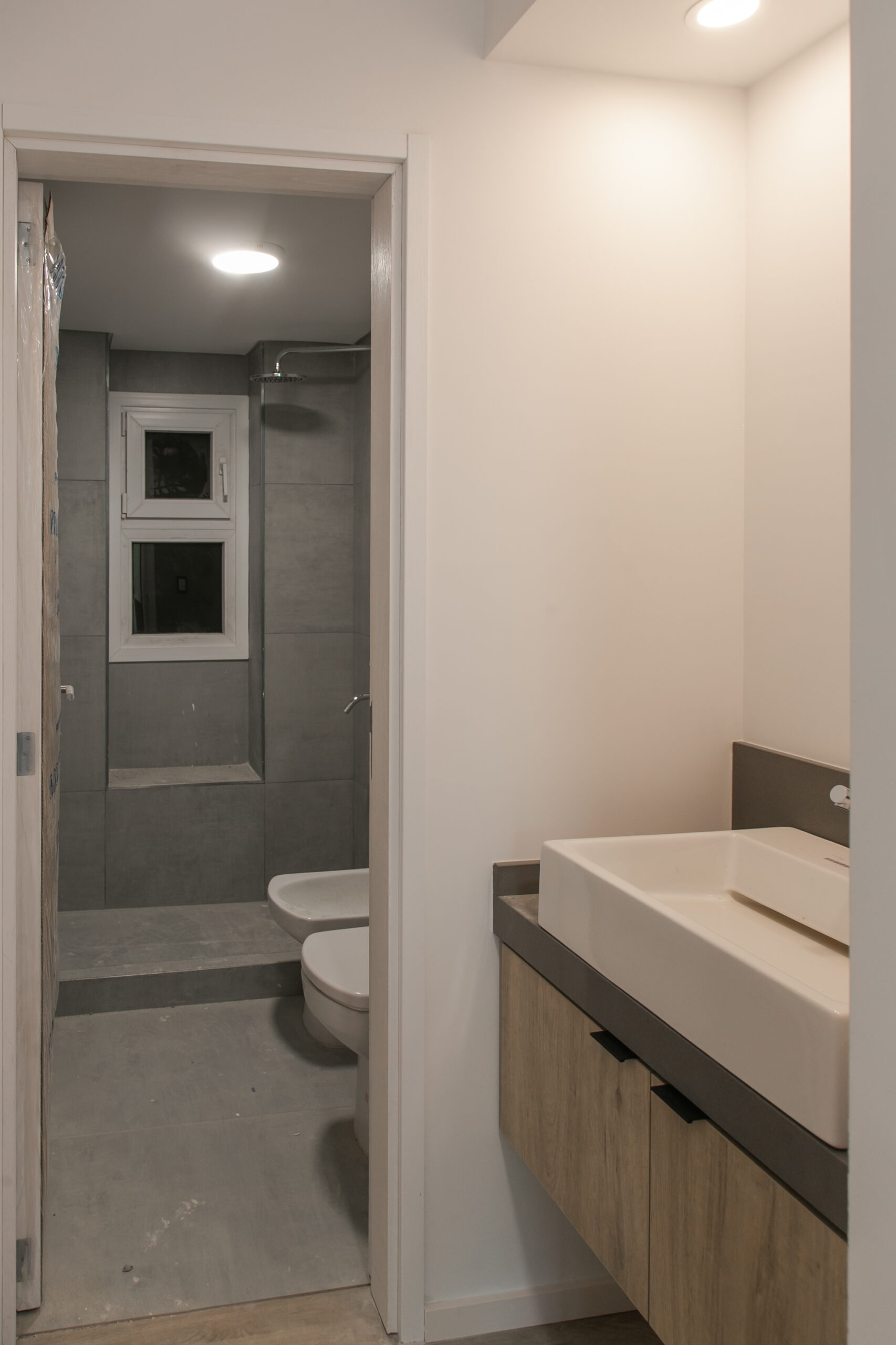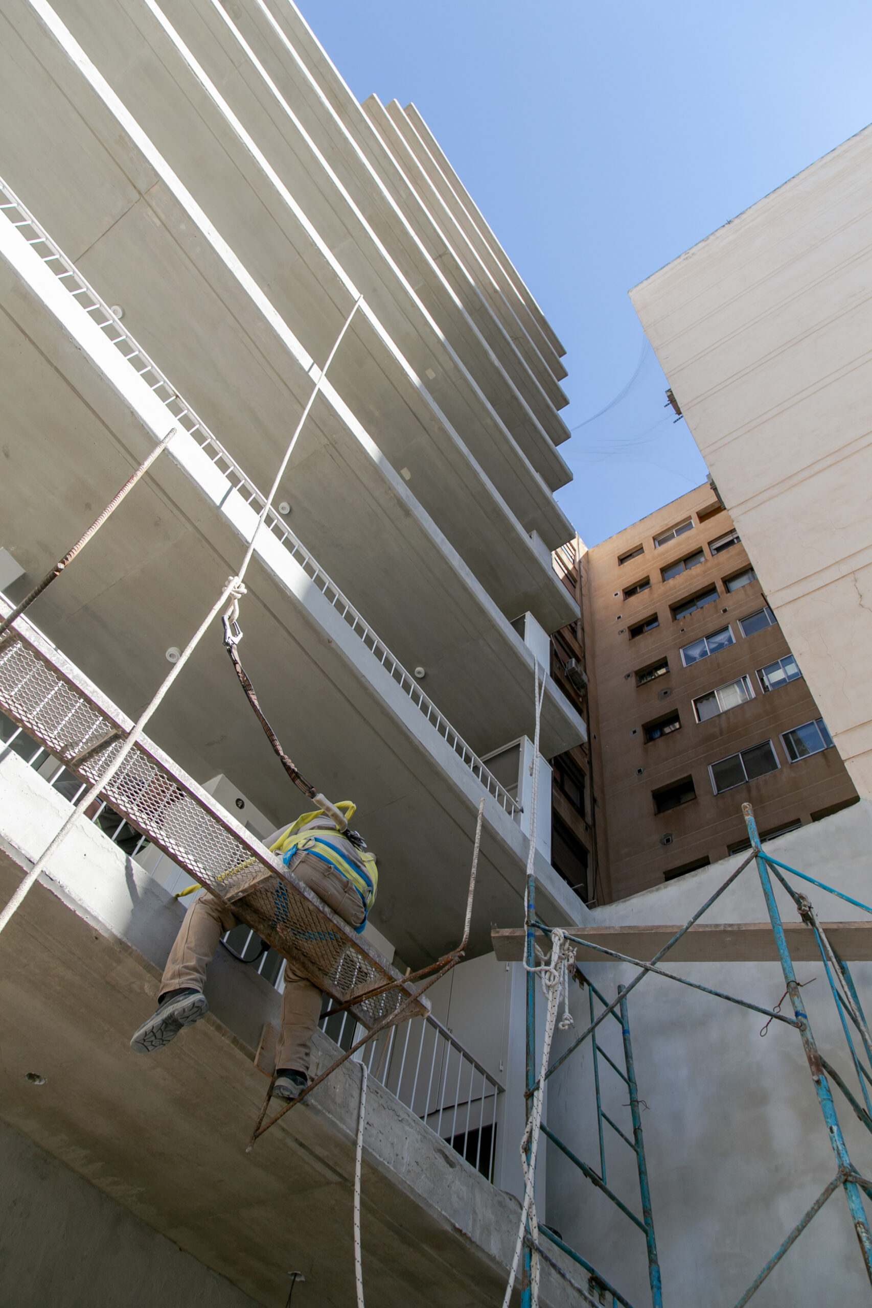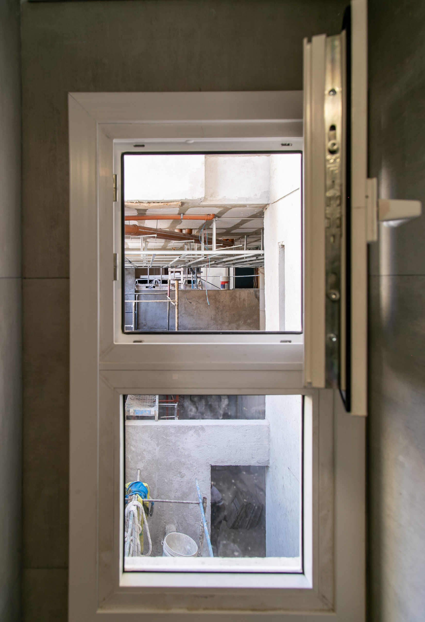 INTERIORES DE DPTO: COLOCACIÓN DE ABERTURAS EN PISOS SUPERIORES - CONTINÚA COLOCACIÓN DE MUEBLES Y MESADAS - COLOCACIÓN DE PISO VINILICO