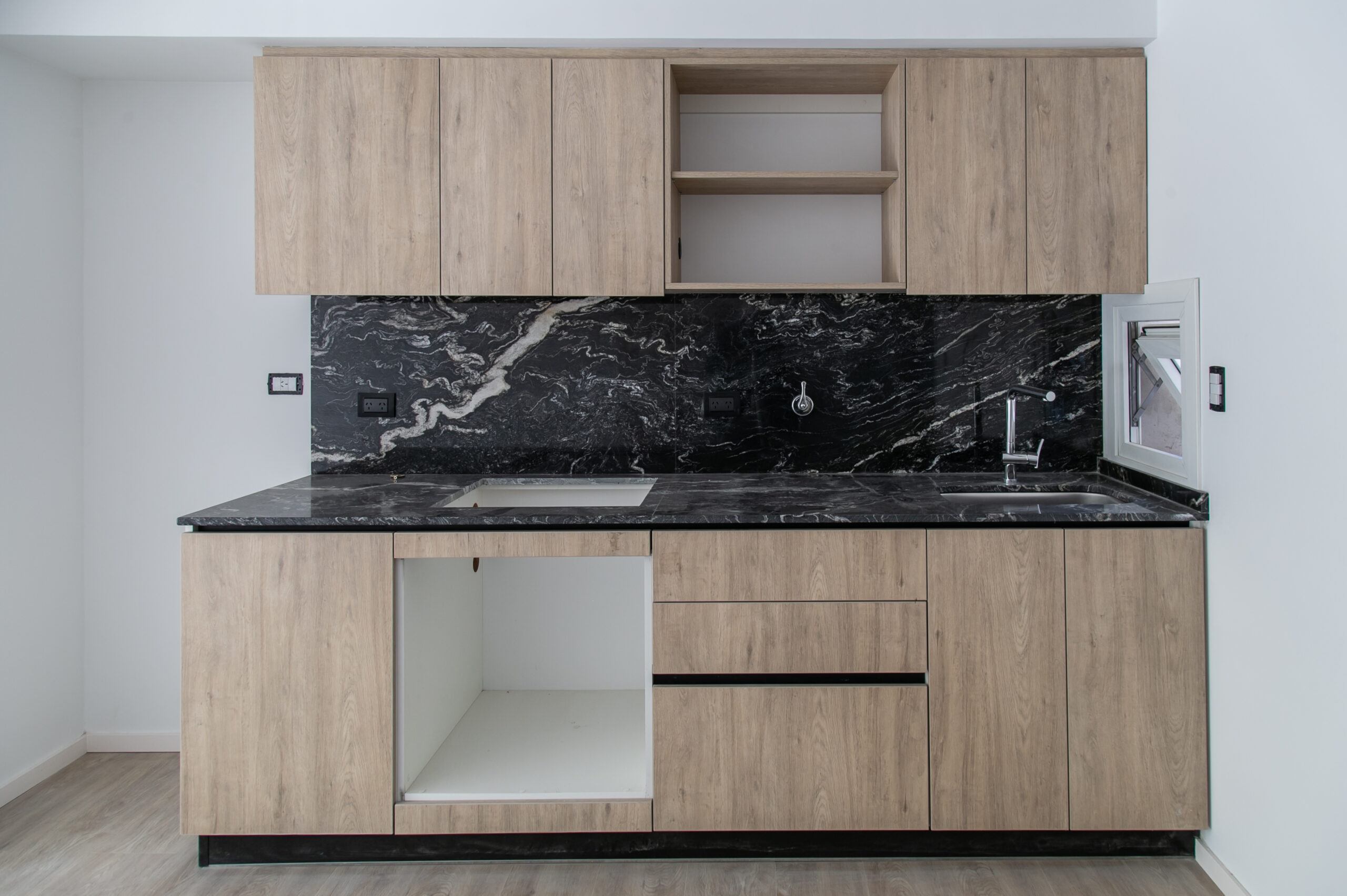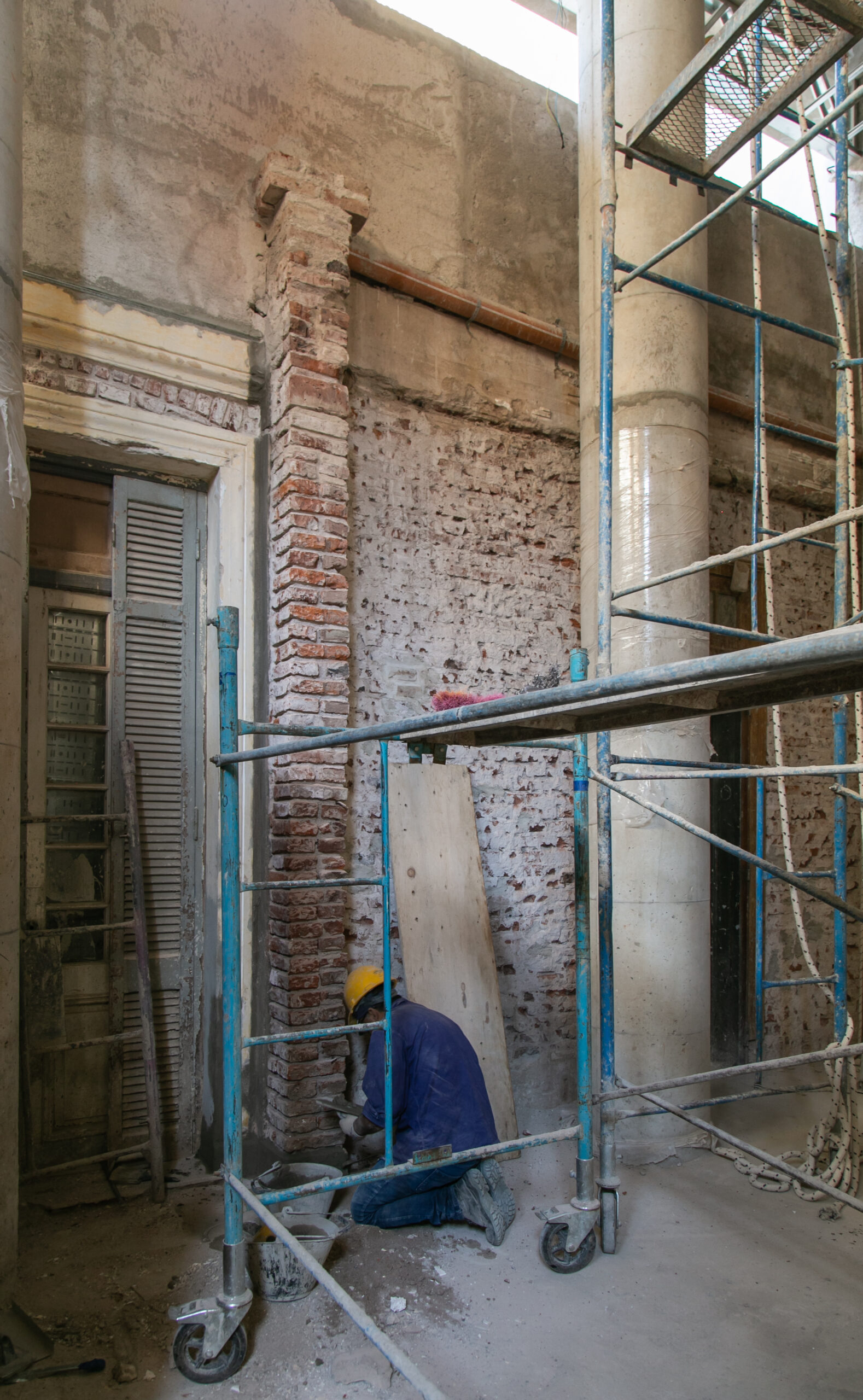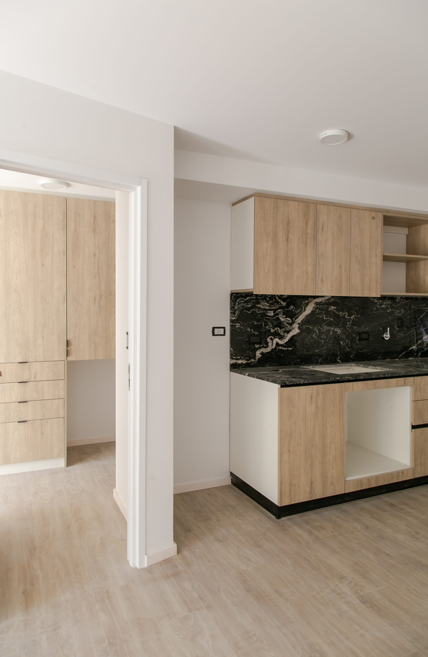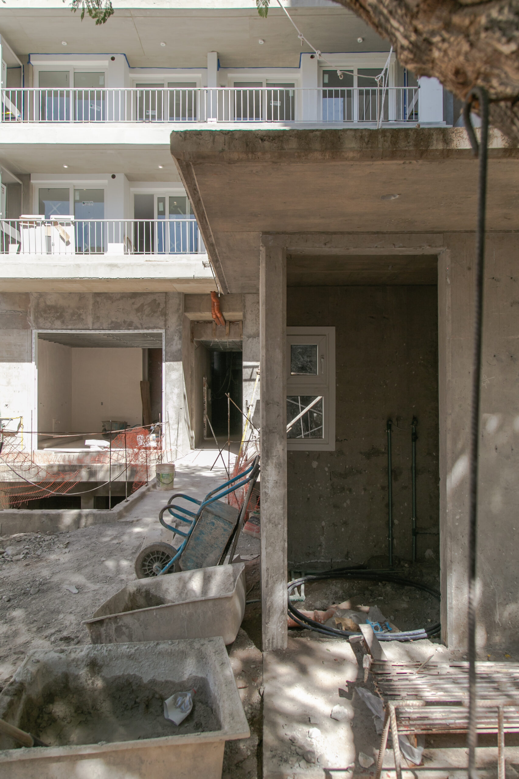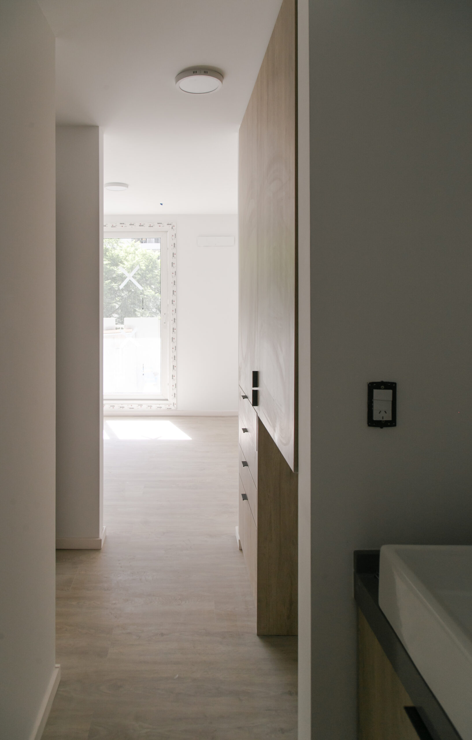 INTERIORES DE DPTO: COLOCACIÓN DE ABERTURAS EN PISOS SUPERIORES - CONTINÚA COLOCACIÓN DE MUEBLES Y MESADAS - COLOCACIÓN DE PISO VINILICO